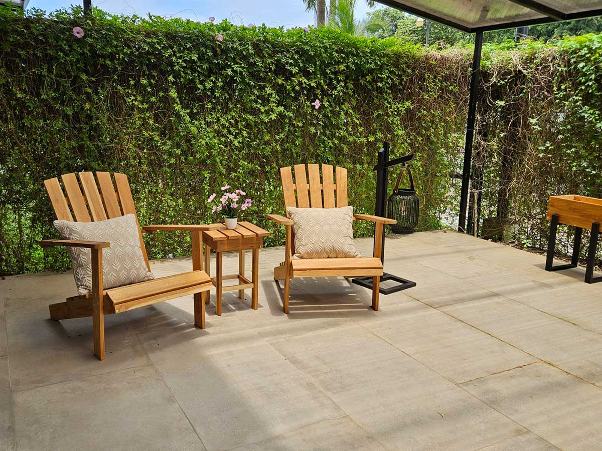 - Private backyard with tiled flooring for easy maintenance