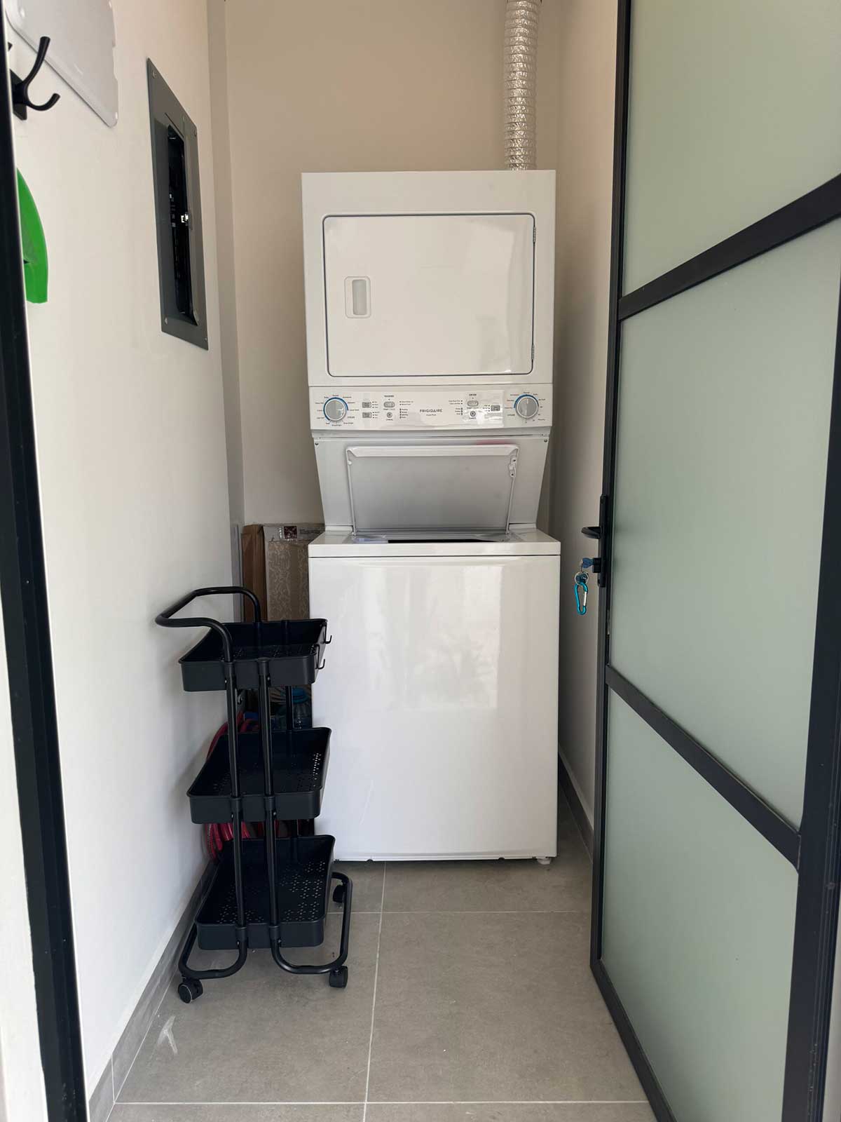 - Separate laundry room with stackable washer and dryer